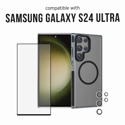 3SIXT 4in1 Protection Bundle mobilskal, skärmskydd, kameraskydd och stressfri applikator, kompatibel med Samsung Galaxy S24 Ultra, transparent