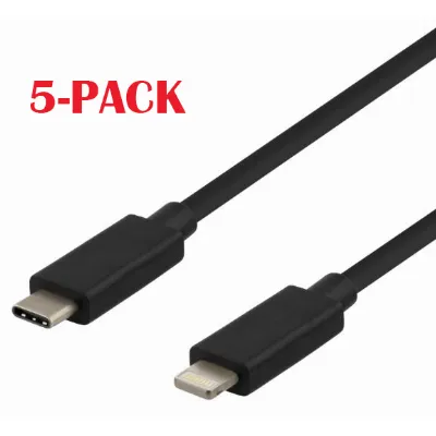 5-PACK Cable USB-C - Lightning, 2.4A, 1m, Black