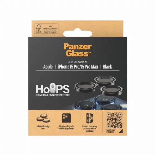 PanzerGlass Hoops Camera Lens Protector iPhone 15 Pro - 15 Pro Max - Black Metal