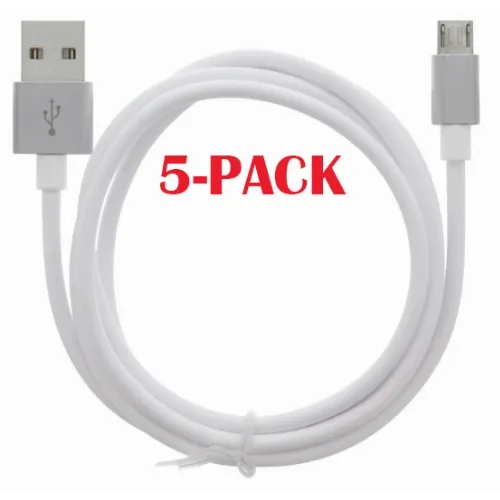 5-PACK Cable USB-A - MicroUSB 2.4A, 1m, White