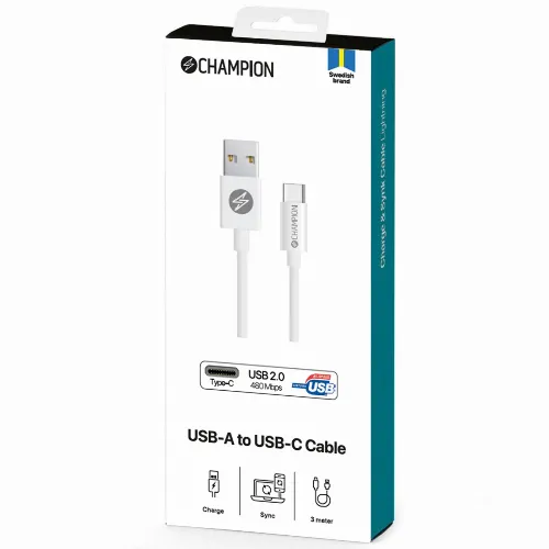 Champion USB-A till USB-C Kabel 3m Vit