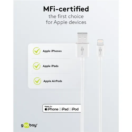 Goobay Lightning USB-kabel för laddning och synkronisering, 2 m, vit MFi-kabel för Apple iPhone/iPad