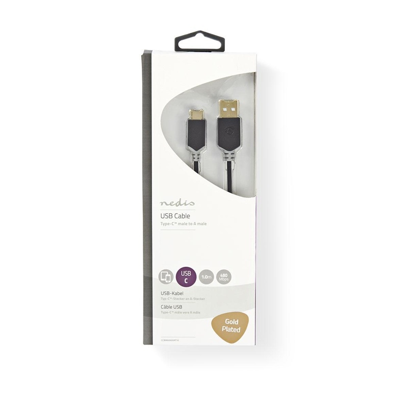 Nedis USB Cable | USB 2.0 | USB-A Male | USB-C™ Male | 60 W | 480 Mbps | Gold Plated | 1.00 m | Round | PVC | Anthracite | Window Box