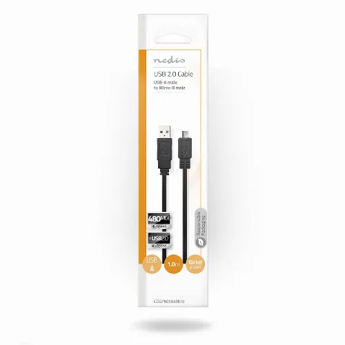 Nedis USB Cable | USB 2.0 | USB-A Male | USB Micro-B Male | 480 Mbps | Nickel Plated | 1.00 m | Flat | PVC | Black | Envelope