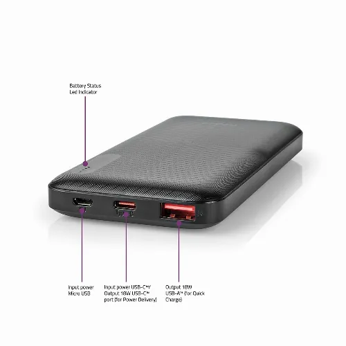 Nedis Powerbank | 10000 mAh | 1.5 / 2.0 / 3.0 A | Number of outputs: 2 | Output connection: 1x USB-A / 1x USB-C™ | Input connection: 1x Micro USB / 1x USB-C™ | PD2.0 18W | Lithium-Polymer