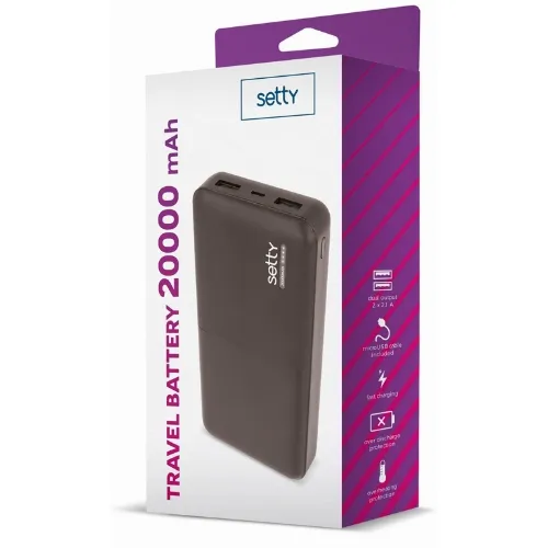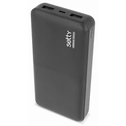 Setty powerbank med 20 000mAh & dubbla USB-portar, svart