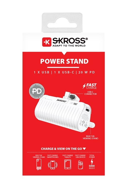 SKROSS Power Stand 18,5 W, 5000 mAh powerbank och smartphone-stativ i ett