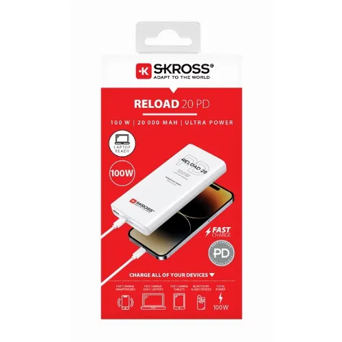 SKROSS Powerbank Reload 20 PD 100 W praktiskt extrabatteri med Power Delivery och Quick Charge för snabbladdning