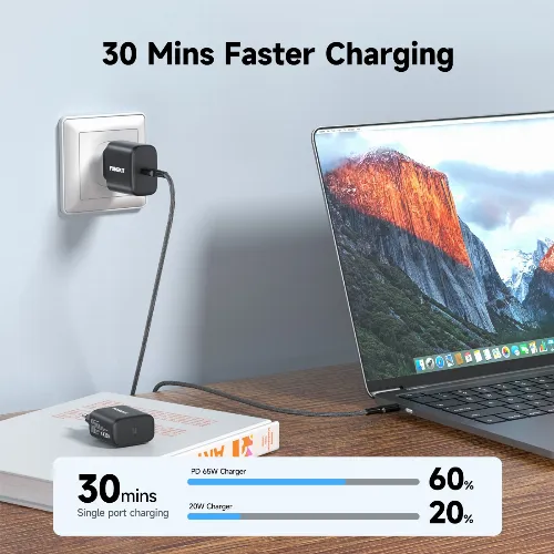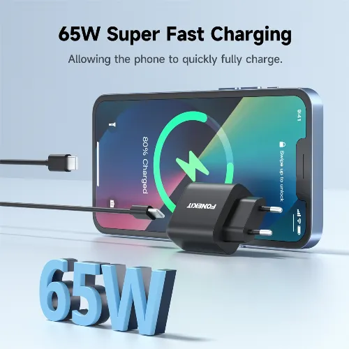 FoneKit GaN PD 65W AC charger, USB-C, black