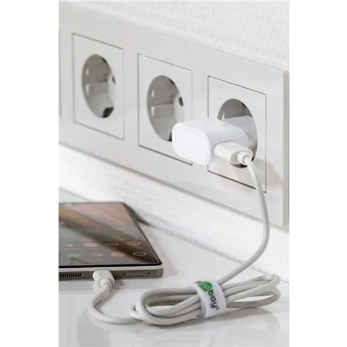 Goobay USB-C™ Dual laddningssats (5 W) Strömförsörjning med USB-C™-kabel 1 m (vit)