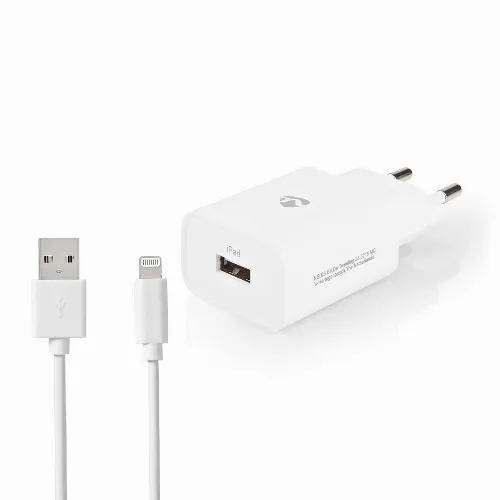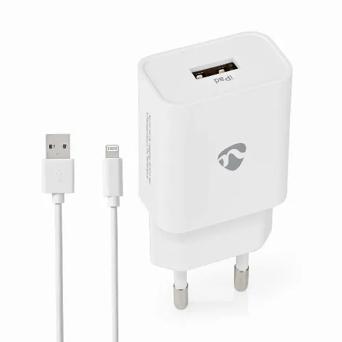 Nedis Wall Charger | 1x 2.4 A | Number of outputs: 1 | USB-A | Lightning 8-Pin (Loose) Cable | 1.00 m | Single Voltage Output | White