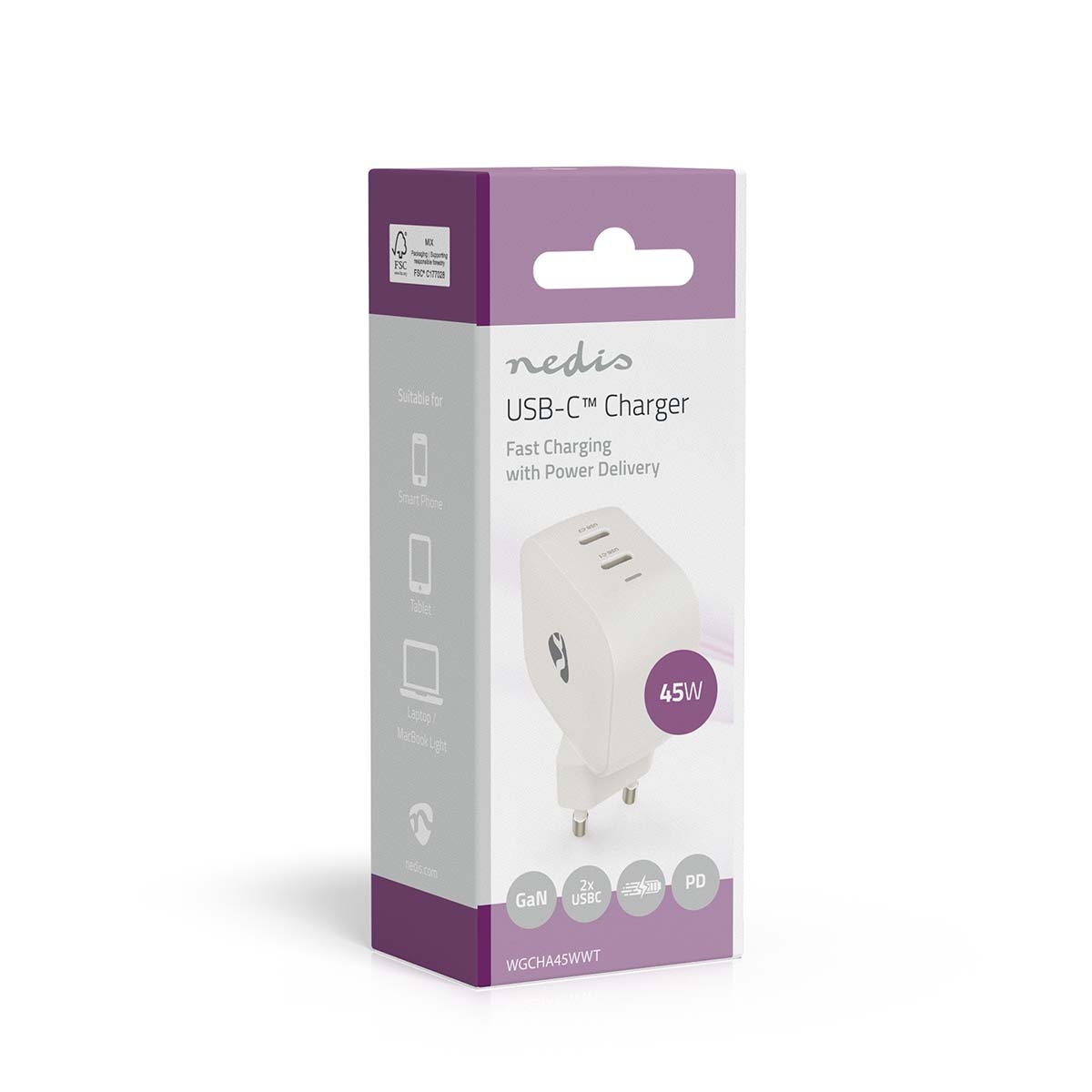 Nedis Wall Charger | PD3.0 | 2.25 / 3.0 A | Number of outputs: 2 | 2x USB-C™ | Automatic Voltage Selection | White
