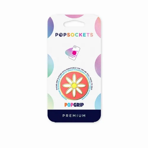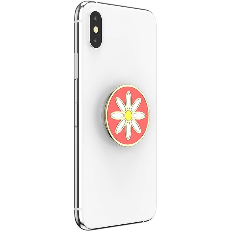 PopSockets Enamel Quaint Daisy Coral Removable Grip with Standfunction Premium