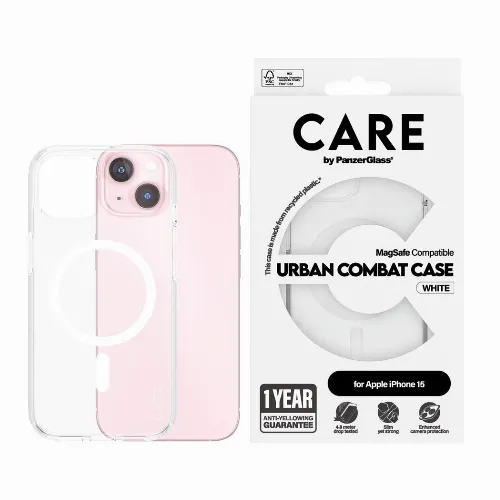 CARE by PanzerGlass - Flagship Case Transparent Urban Combat w. White MagSafe - iPhone 15