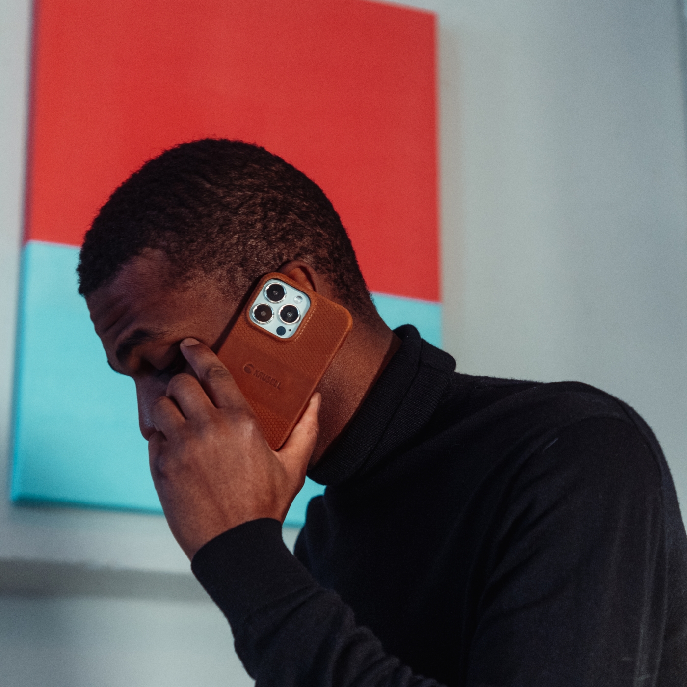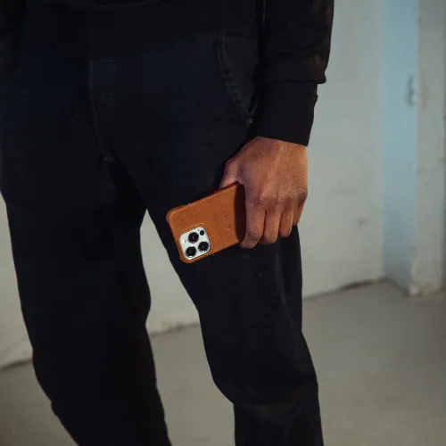 Krusell Leather Cover iPhone 13 Cognac