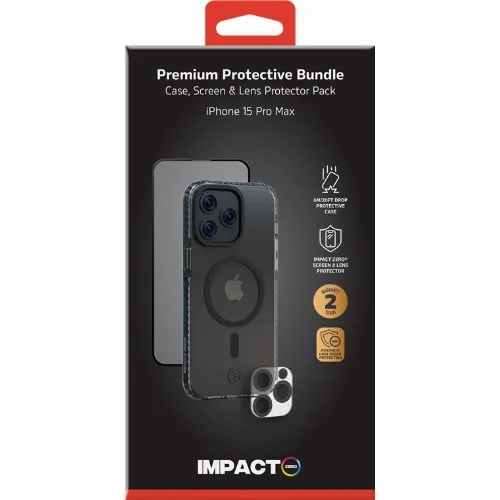 Impact Zero mobilskal 3in1-set kompatibel med Apple iPhone 15 Pro Max, transparent