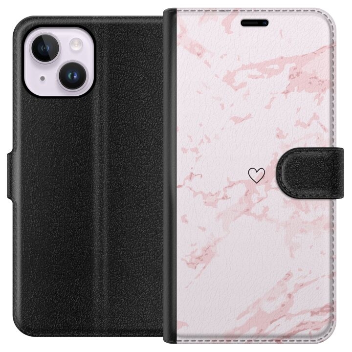 Wallet case for Apple iPhone 15 Plus with Pink Heart design