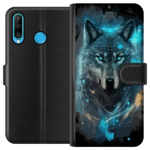 Wallet case for Huawei P30 lite with Wolf design