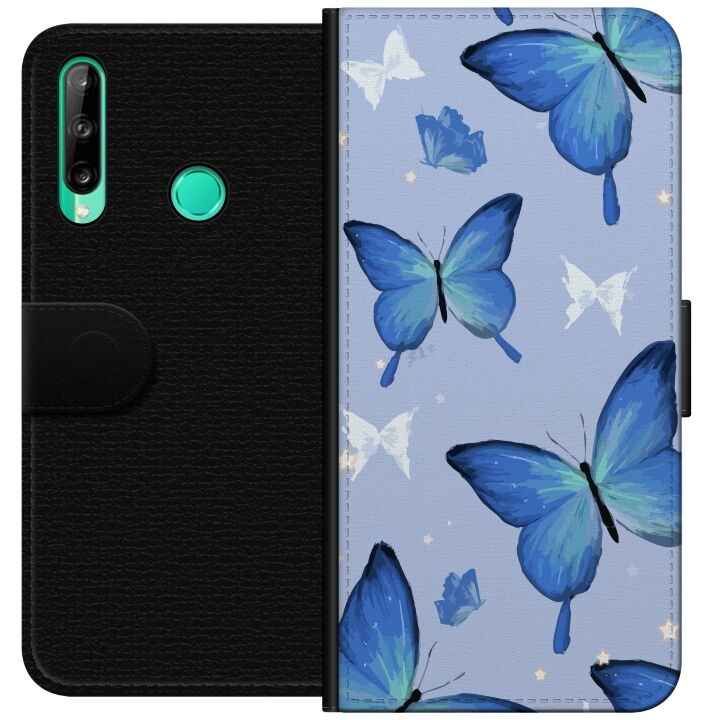 Wallet case for Huawei P40 lite E with Blue butterflies design