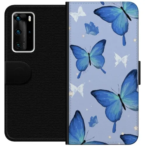 Wallet case for Huawei P40 Pro with Blue butterflies design