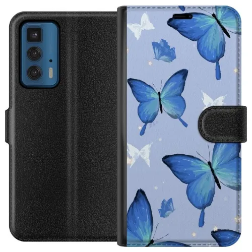 Wallet case for Motorola Edge 20 Pro with Blue butterflies design