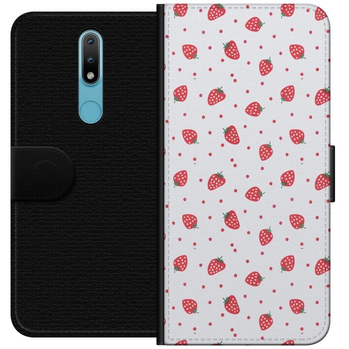 Wallet case for Nokia 2.4 with Strawberries design