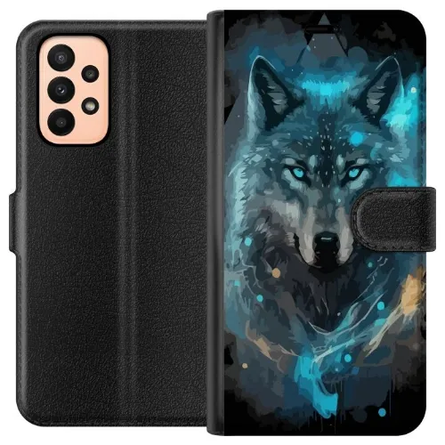 Wallet case for Samsung Galaxy A23 with Wolf design