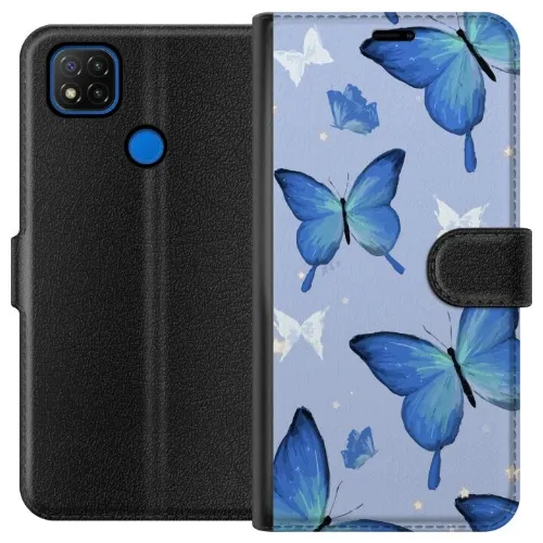 Wallet case for Xiaomi Redmi 9C with Blue butterflies design