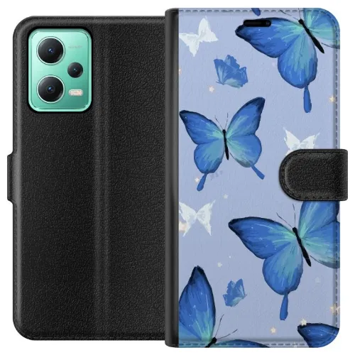 Wallet case for Xiaomi Redmi Note 12 with Blue butterflies design